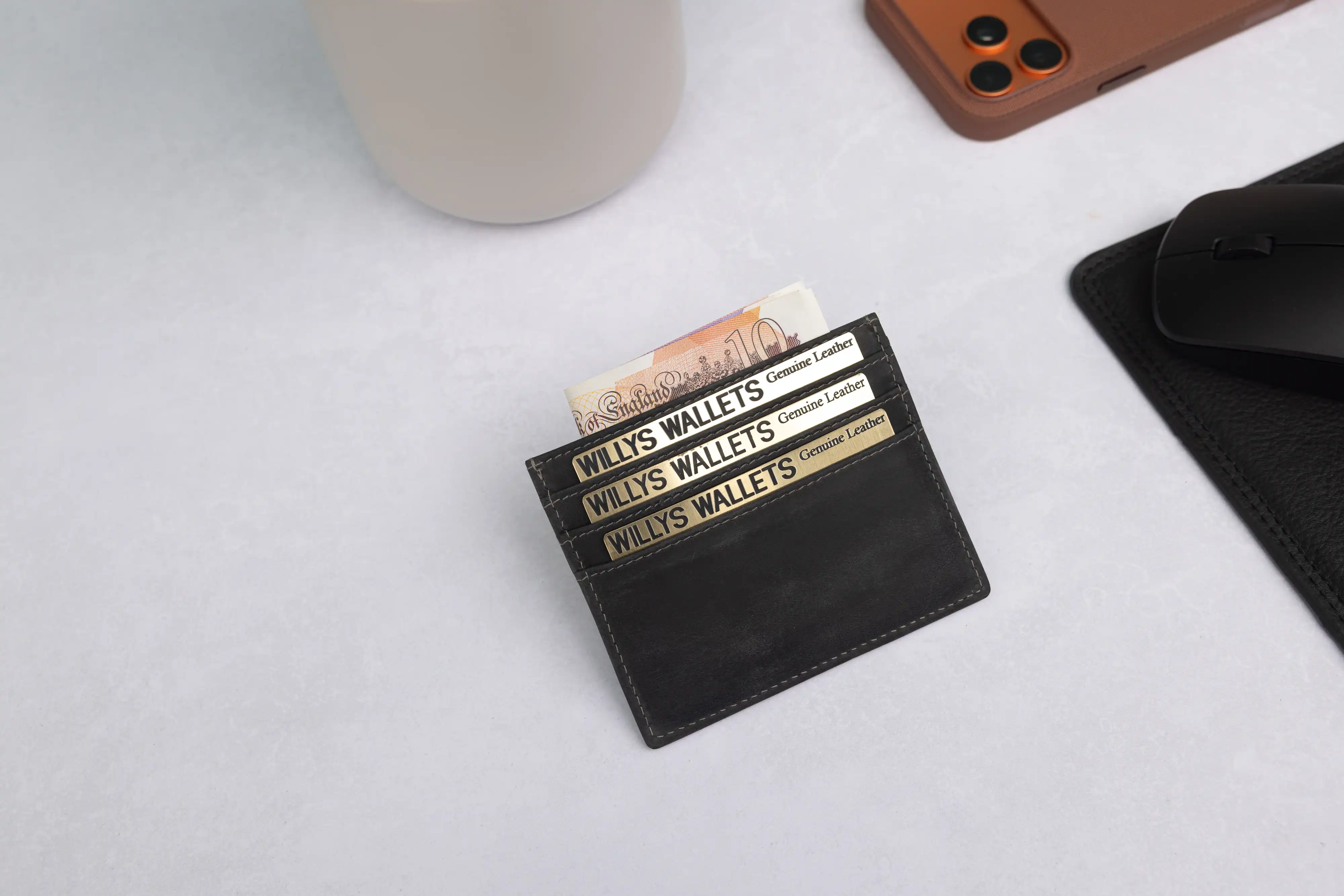 Personalised Black Hunter Leather Card Holder – RFID Slim Wallet