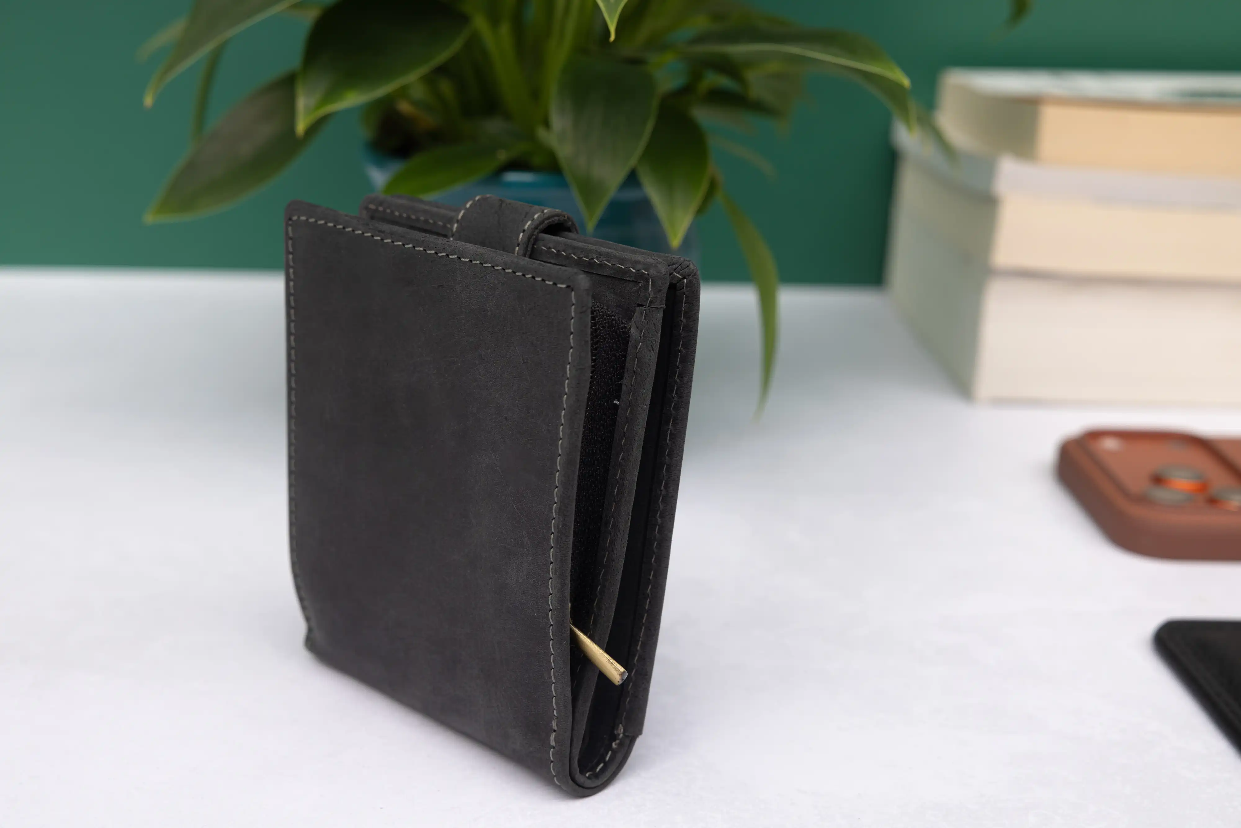 Personalised Black Hunter Leather Wallet – Bifold with Large Zip Coin Pocket