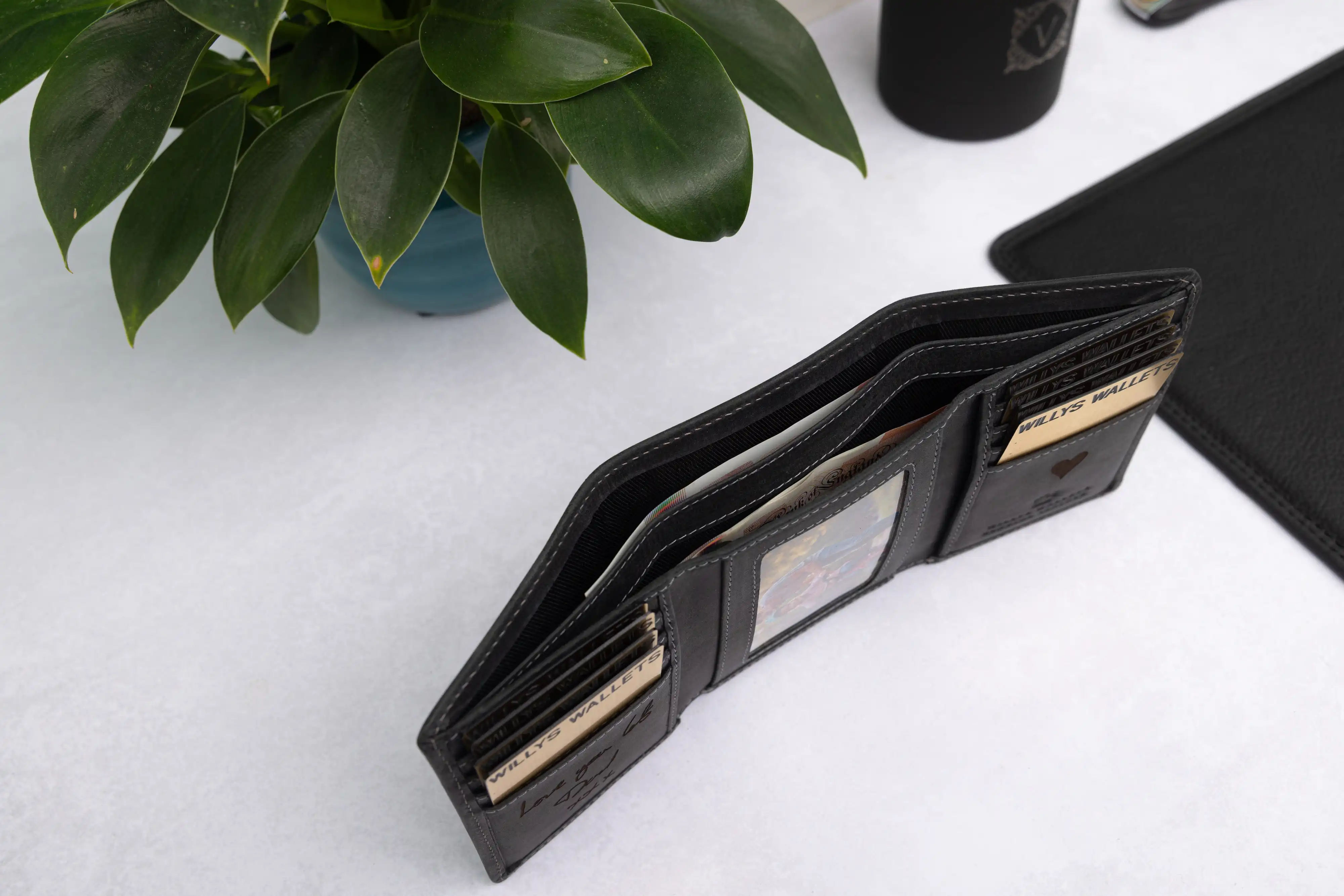Personalised Black Hunter Leather Wallet – Trifold RFID Wallet for Men