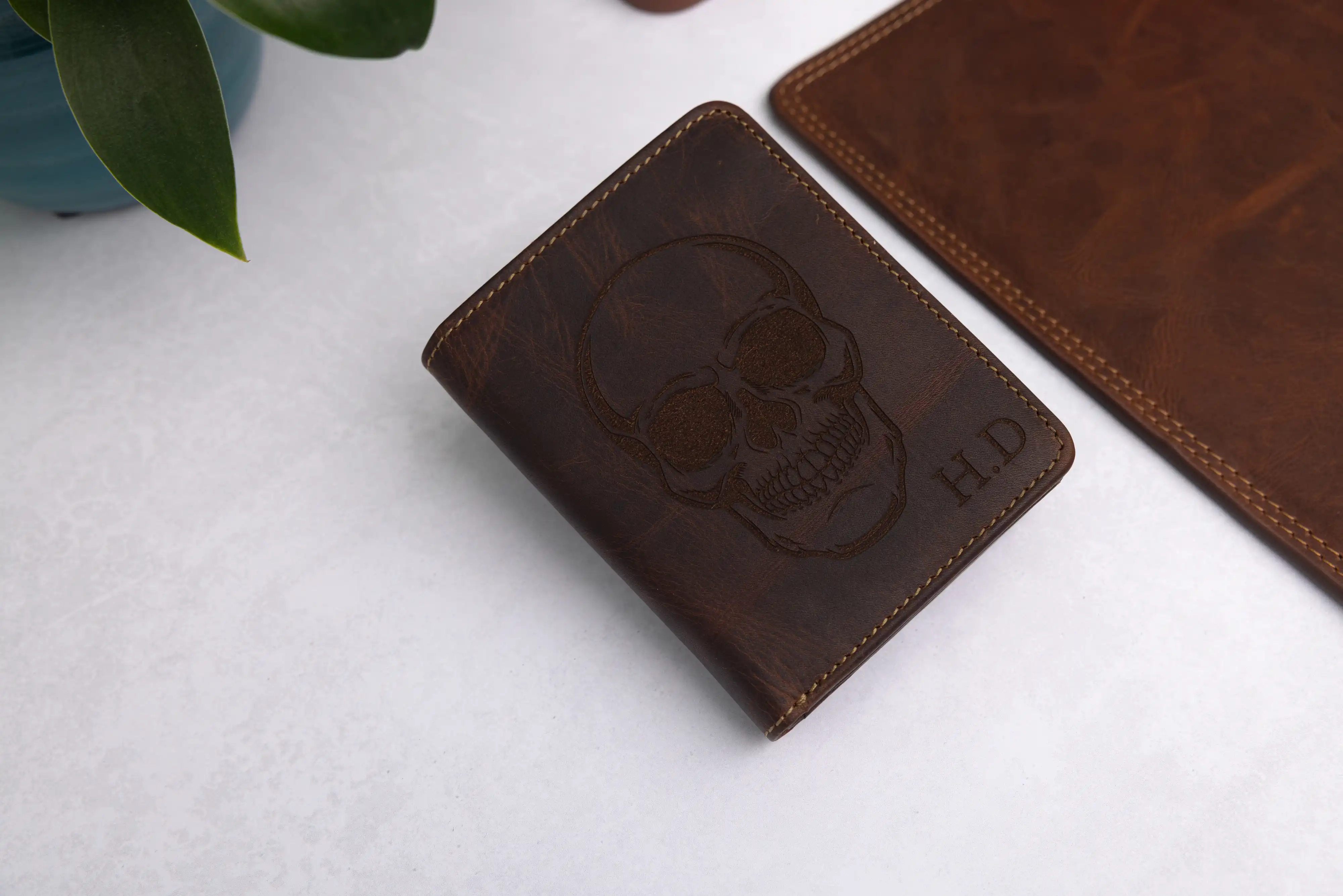 Personalised Brown Leather Wallet – Trifold Design with RFID Protection